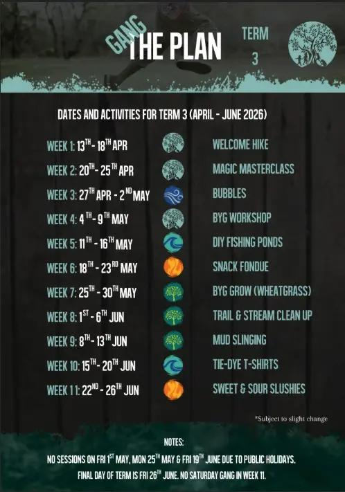 Note: for any new Gang members, there will be an additional one-off payment of $750 for their Gang Pack which will be handed out at the first session. A separate invoice will be sent via email at the start of term.